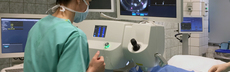 Na operačním sále se přístroj přibližuje k oku. Přisaje se a s naprostou přesností zacílí na plochu, kde bude lékař pomocí laseru vytvářet rohovkovou lamelu.