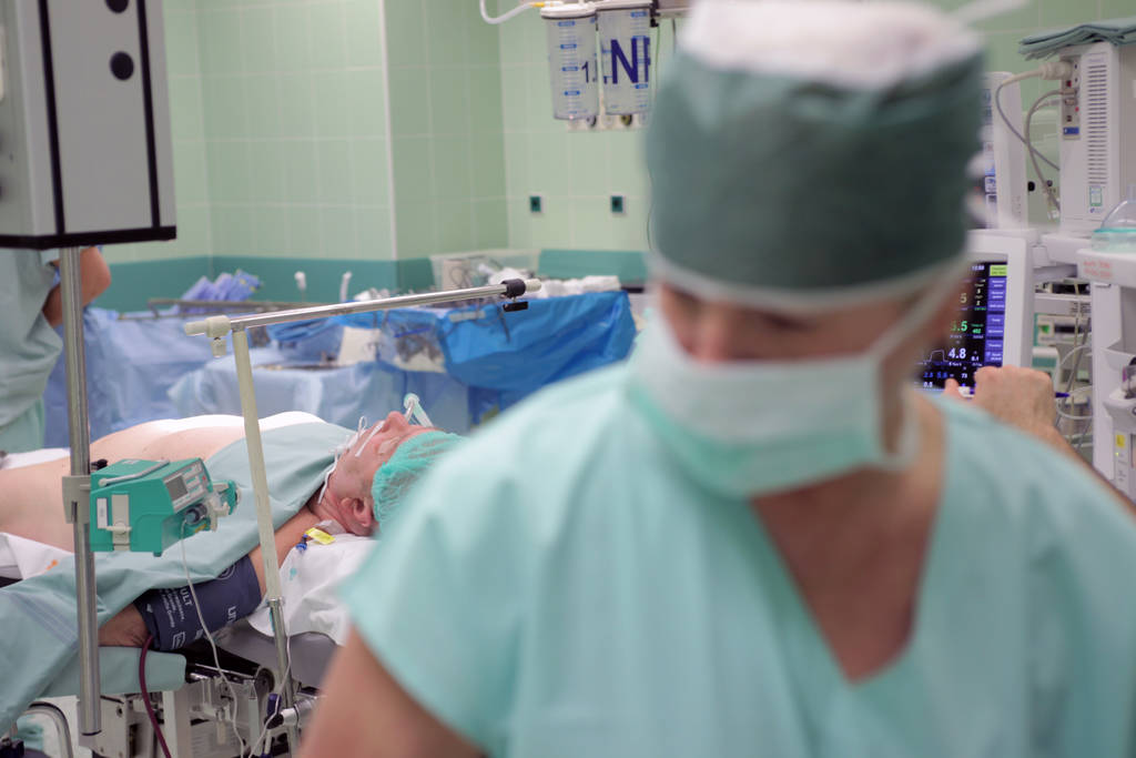 Na sále se právě připravuje závěrečná část operace – odstranění nefunkční části orgánu.