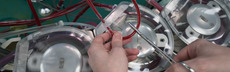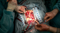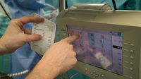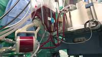 Lékaři sledují přístrojem pro mimotělní oběh laboratorní hodnoty pacienta přímo při operaci.