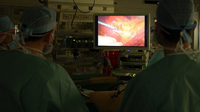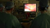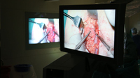 Druhý lékař ovládá kameru. Operující lékař celý zákrok nesleduje přímo, ale na displeji, kde mu promítají zvětšené záběry z kamery. Tento postup je velmi přesný a šetrný, zároveň ovšem nesmírně složitý na koordinaci.